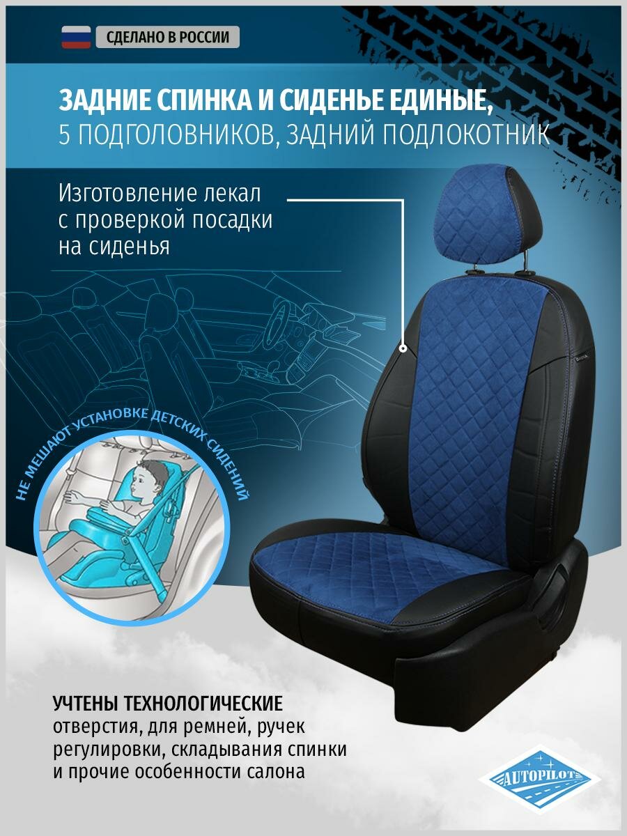 Купить Комплект чехлов АВТОПИЛОТ из алькантары для Mitsubishi L200 4, ромб, черный/синий