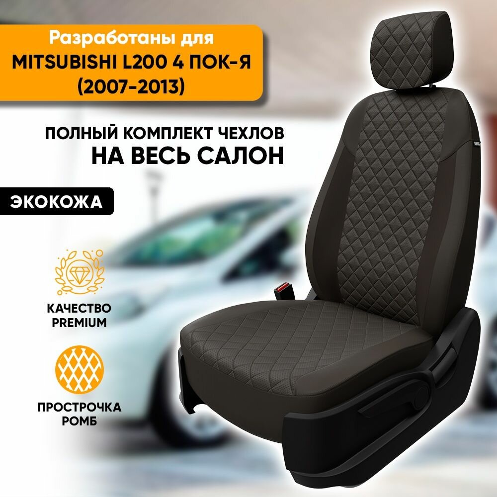 Комплект чехлов АВТОПИЛОТ из экокожи для Mitsubishi L200 4, ромб, темно-серый