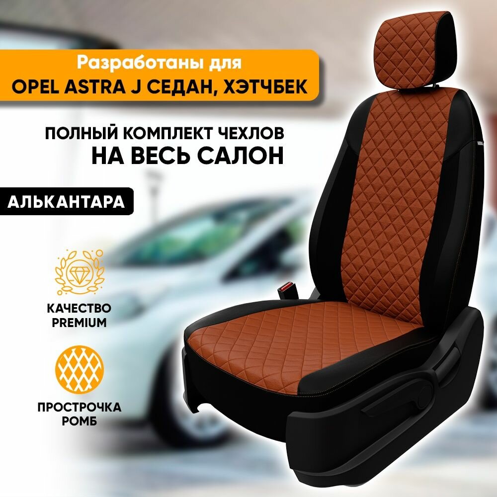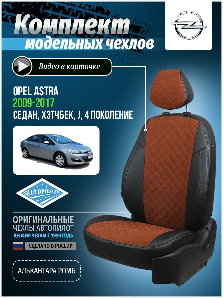 Купить Комплект чехлов Автопилот Алькантара ромб Opel Astra J Sd/Hb с 09г. Черный + Коричневый