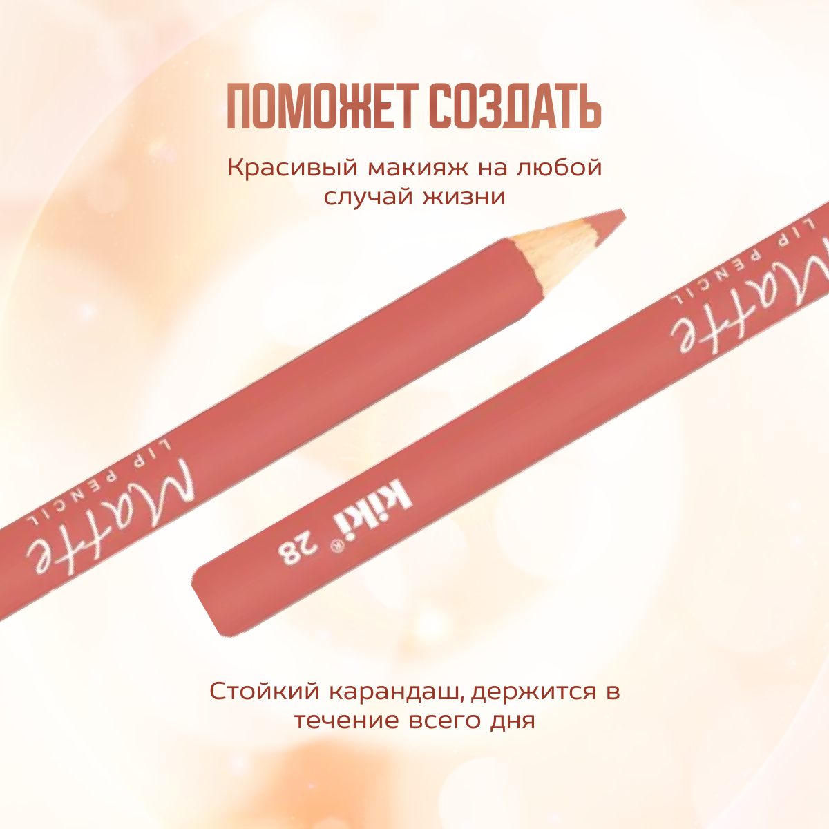 Карандаш для губ kiki MATTE тон 28 пыльная роза, водостойкий, матовый, насыщенный цвет, косметический карандаш для губ
