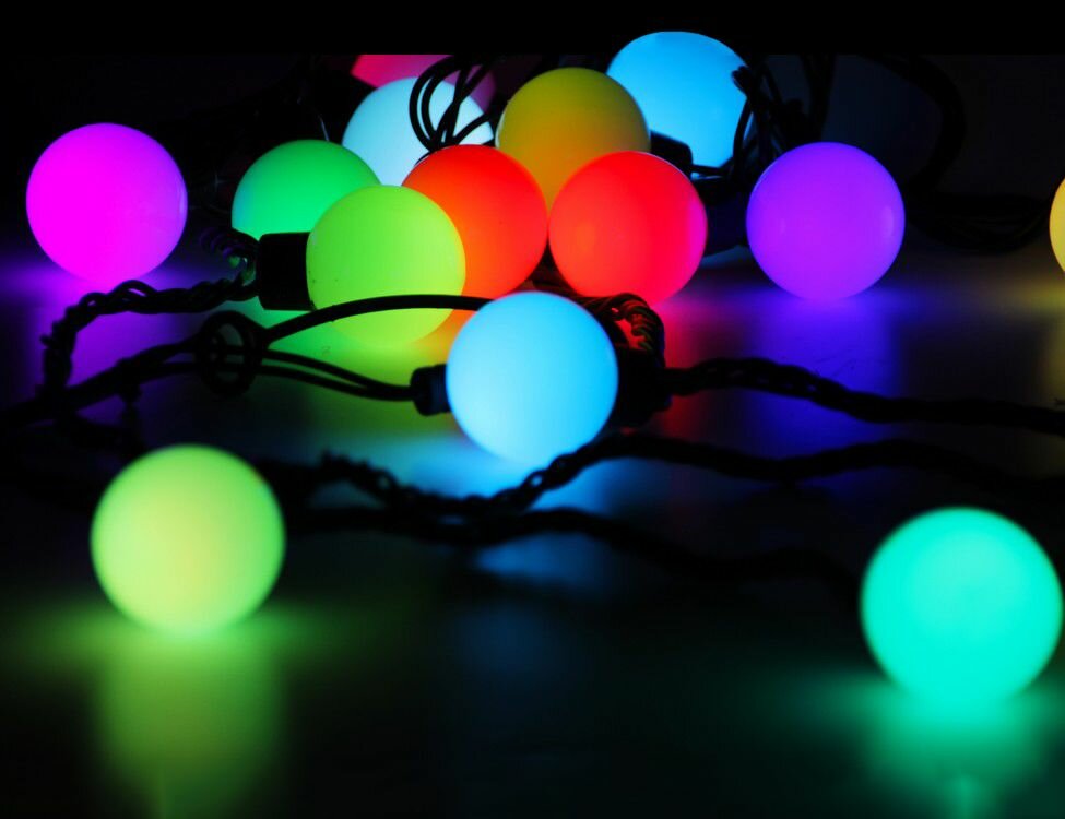 Светодиодная гирлянда шарики Rich Led 5 м, 20 RGB LED ламп 40 мм, чёрный ПВХ, соединяемая, IP54, Rich LED интересное: