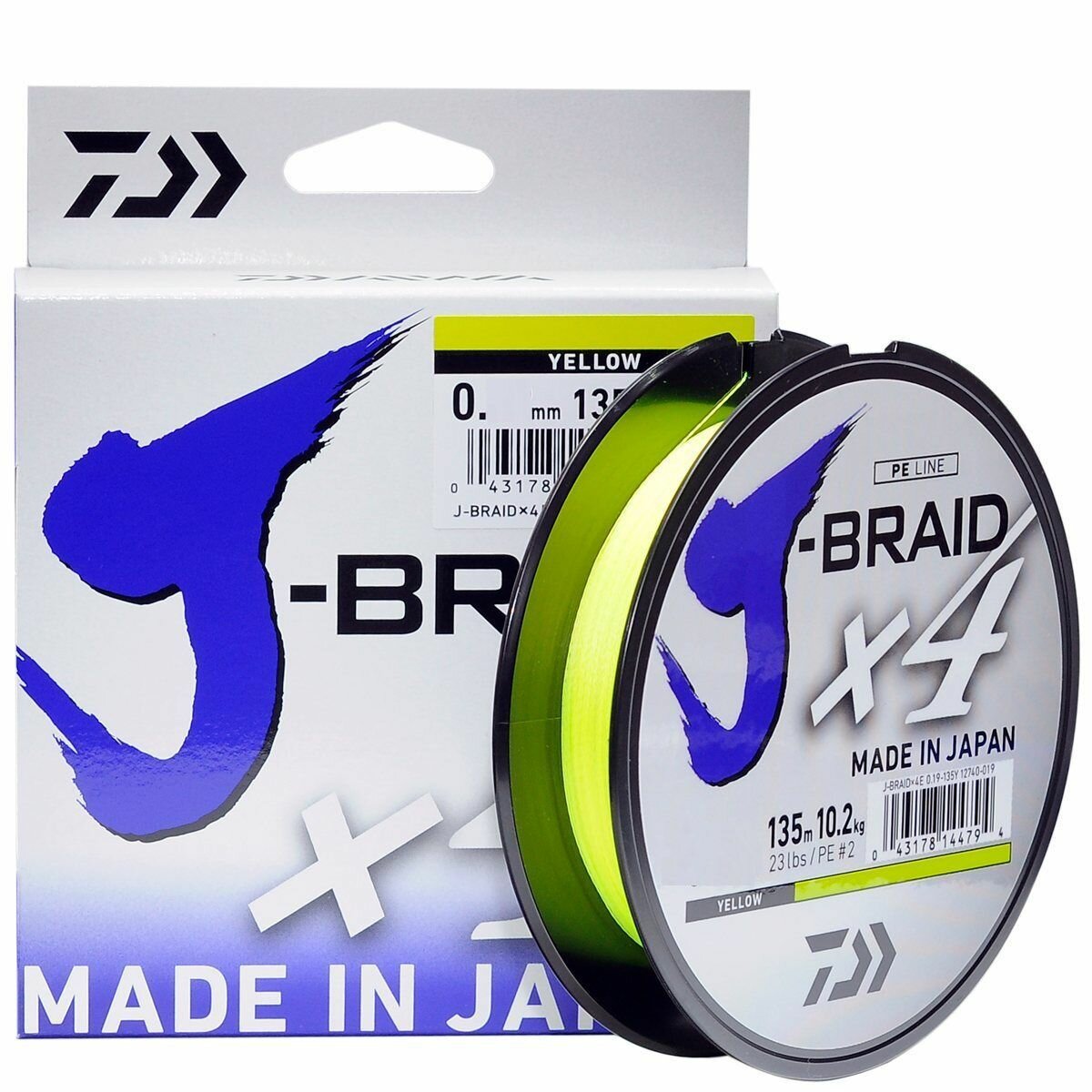 Плетеный шнур для рыбалки Daiwa J-Braid x4 желтый 135 метров 0.21 мм / плетенка для спиннинга