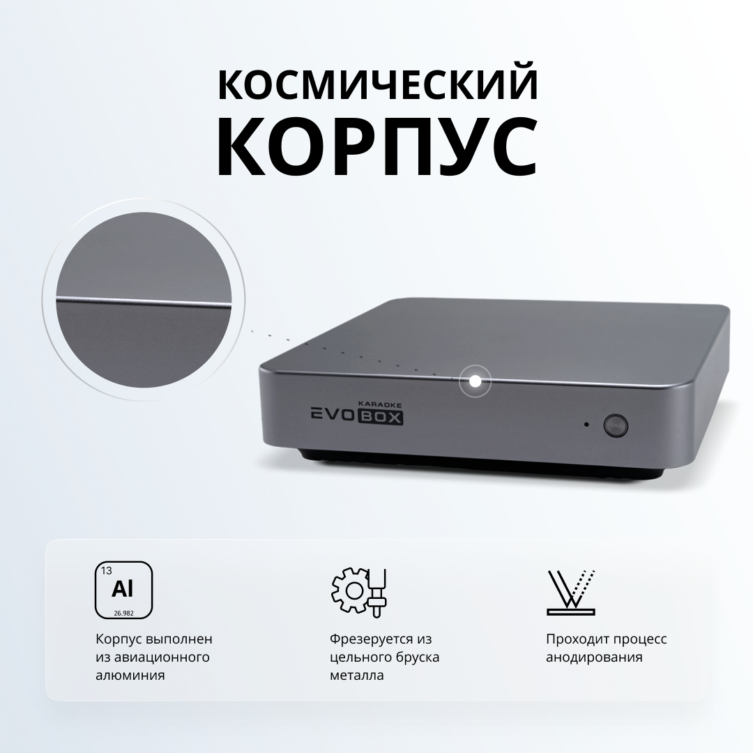Evolution EVOBOX - компактная система караоке. 2000 популярных песен. Бесплатно 100 песен. 43000 песен в облачном хранилище