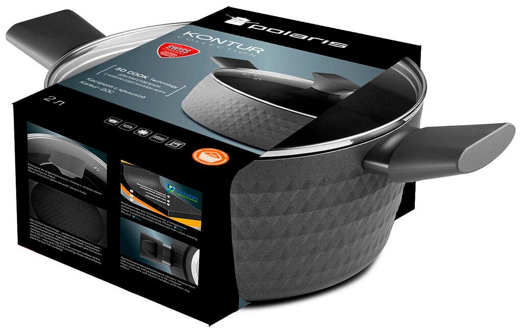 Кастрюля POLARIS Kontur 20C, 2л, с крышкой, черный [015077]