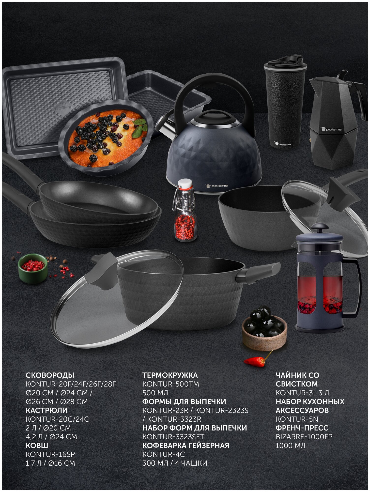 Кастрюля POLARIS Kontur 24C, 4.2л, с крышкой, черный [015082]