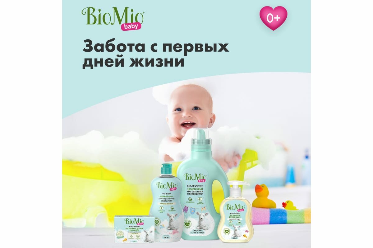СохранитьГель для стирки BioMio Bio-Sensitive Baby, гель и кондиционер для детского белья, 1 л, бутылка интересное: