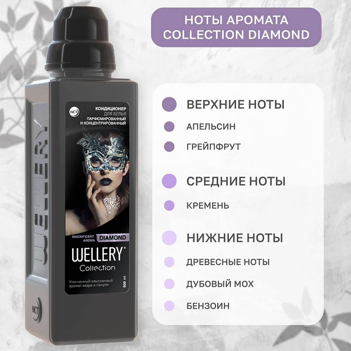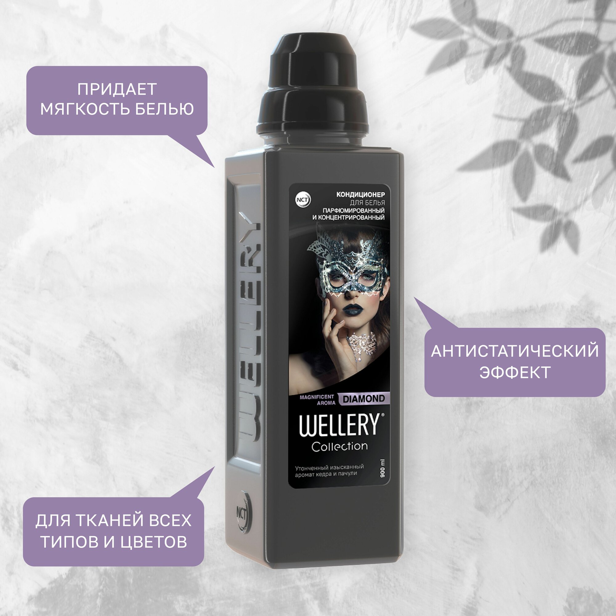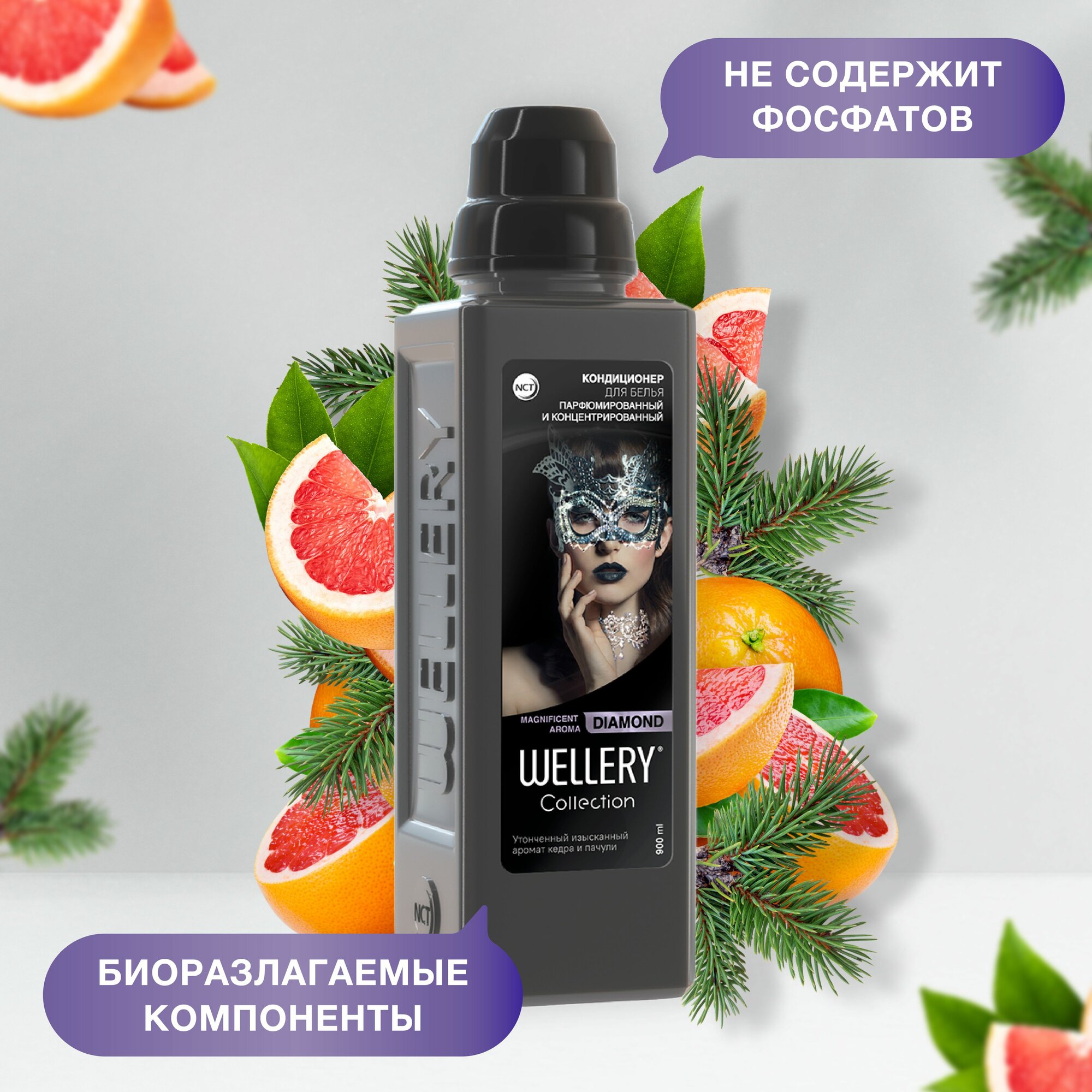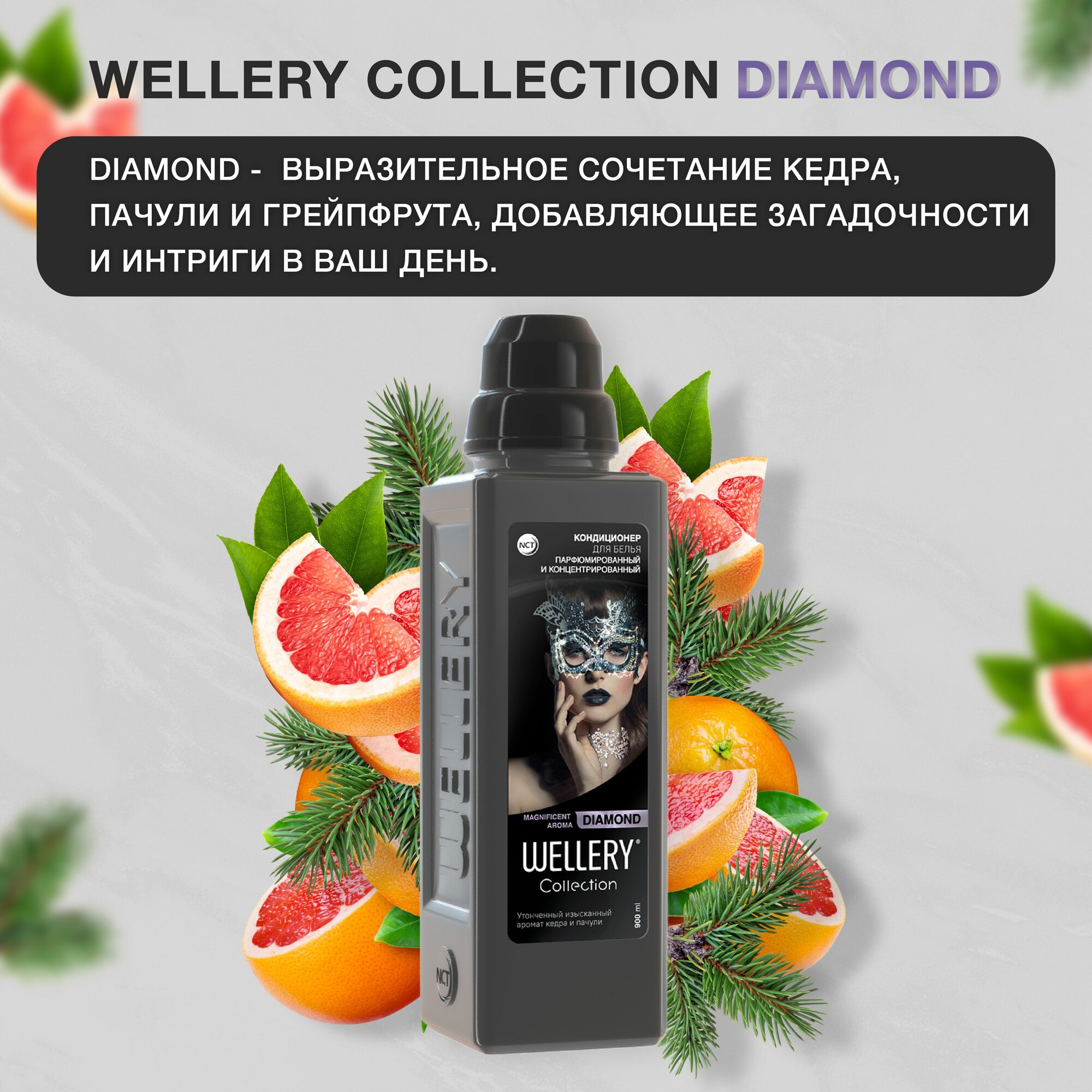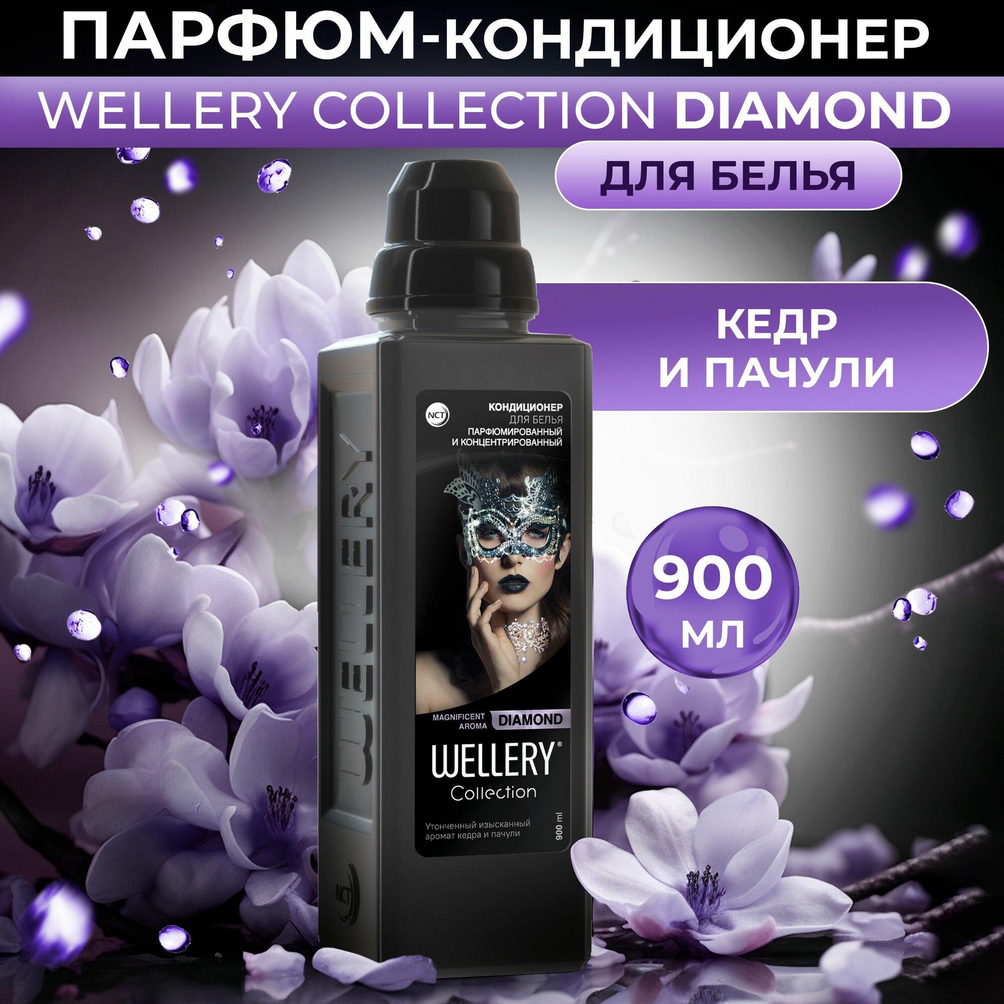Wellery Парфюмированный кондиционер для белья, Collection DIAMOND, аромат кедра и пачули, 900 мл, Wellery