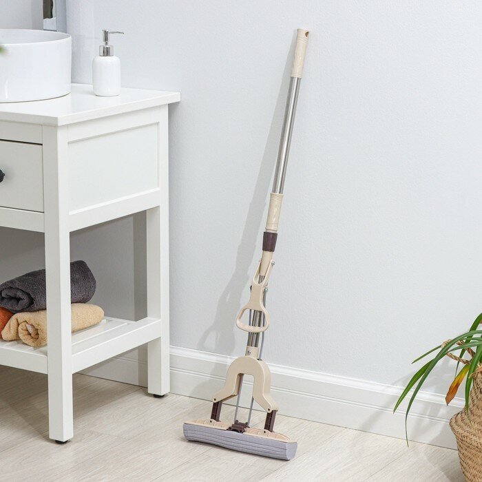 Купить Доляна Швабра для мытья пола PVA со складным отжимом Доляна, составная стальная ручка 89-120 см, насадка 27×6 см
