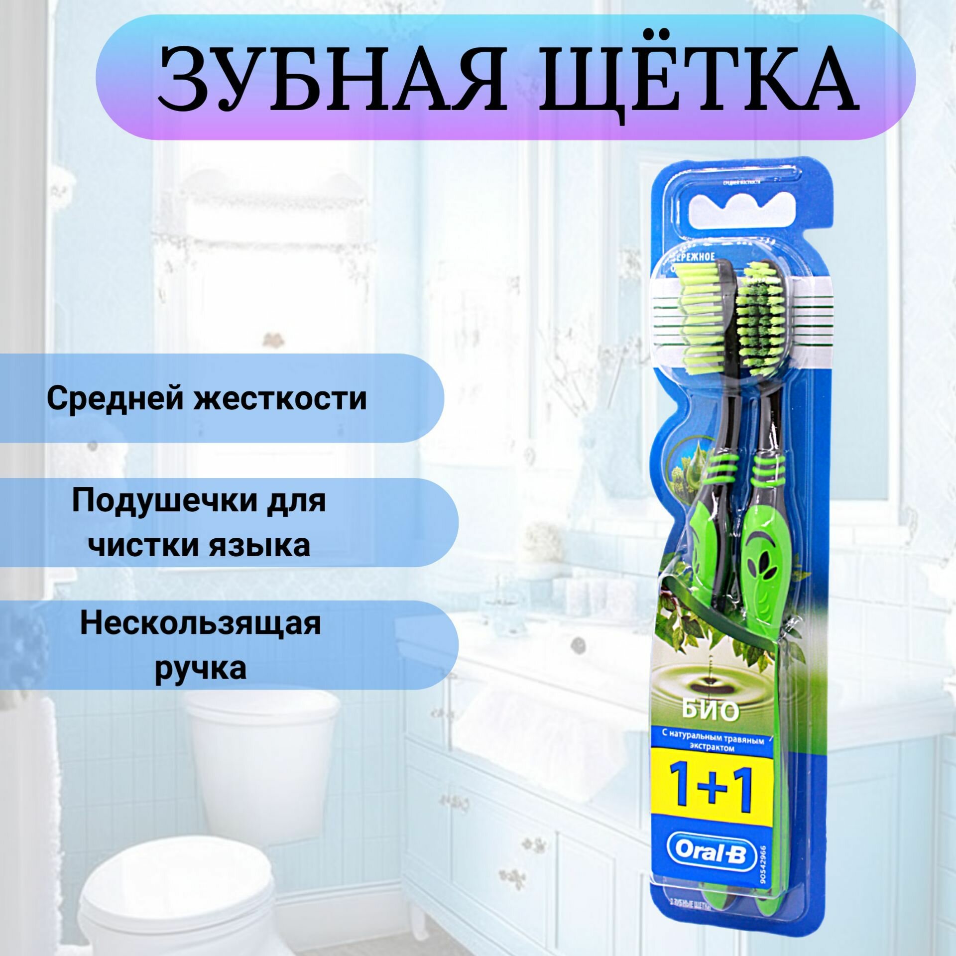 Зубная щетка Oral-B БИО с натуральным травяным экстрактом Средней жесткости, 1 шт.