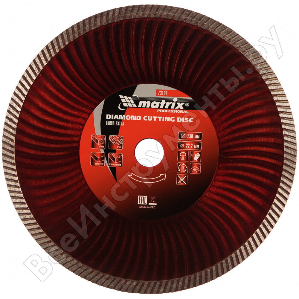 Диск алмазный MATRIX 73198, Turbo Extra, 230 х 22,2 мм, сухая резка