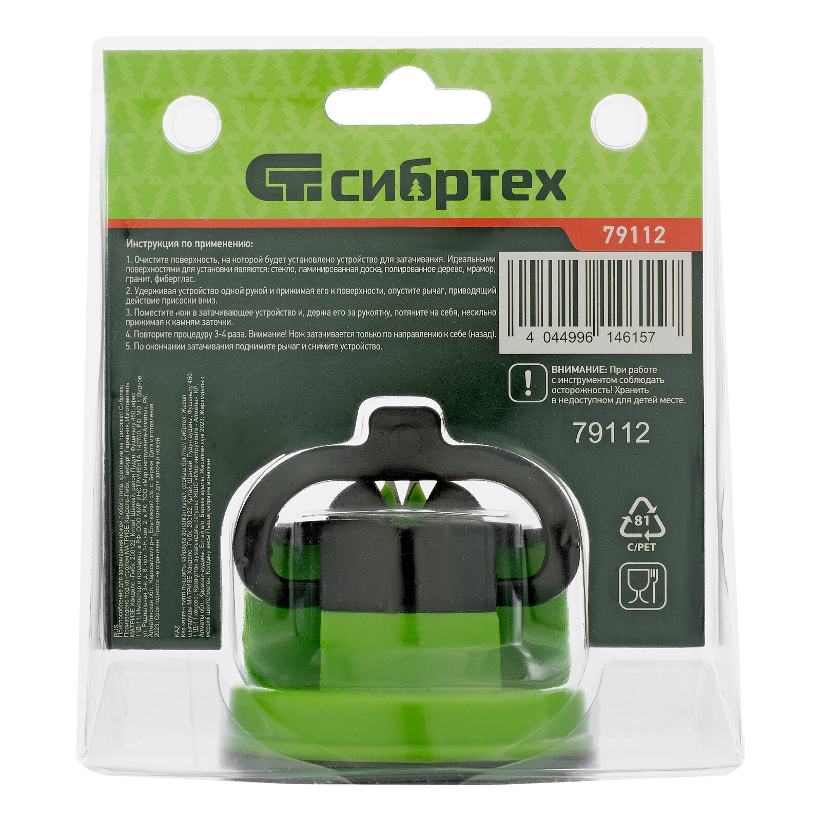 Приспособление для затачивания ножей любого типа, крепление на присоске// Сибртех 79112 .