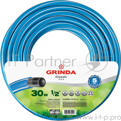 Поливочный шланг GRINDA Classic 1/2", 30 м, 25 атм, трёхслойный, армированный ( 8-429001-1/2-30_z02 )
