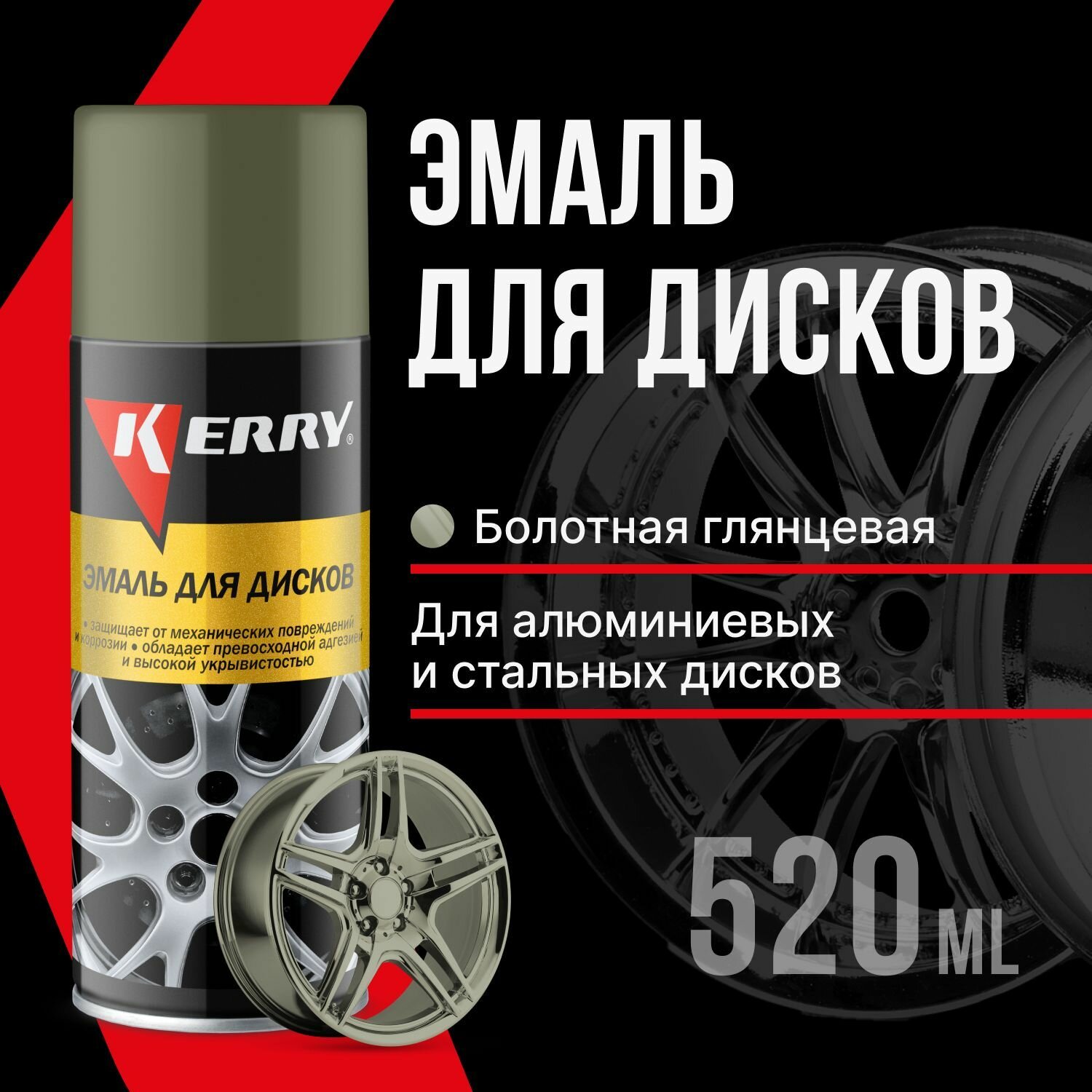 Эмаль для дисков 520 мл аэрозоль KERRY болотная KR-960.4