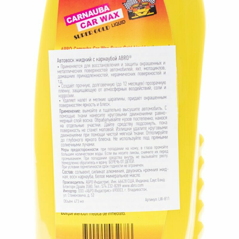 СохранитьВоск жидкий "ABRO" (473 мл) (с карнаубой) ABRO LW-811 | цена за 1 шт интересное: