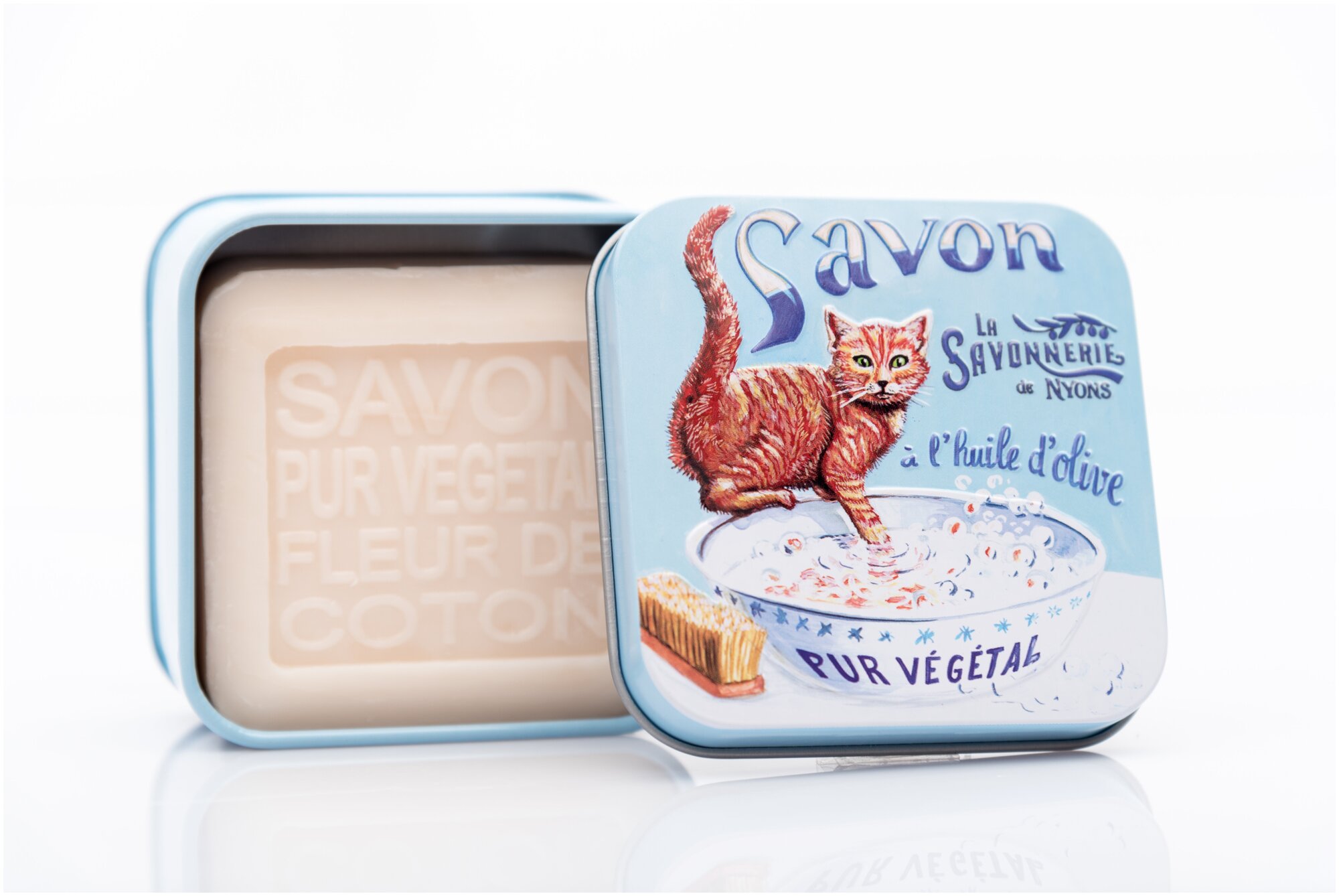 Мыло La Savonnerie de Nyons с цветком хлопка в металлической коробке Рыжая кошка 100 гр.