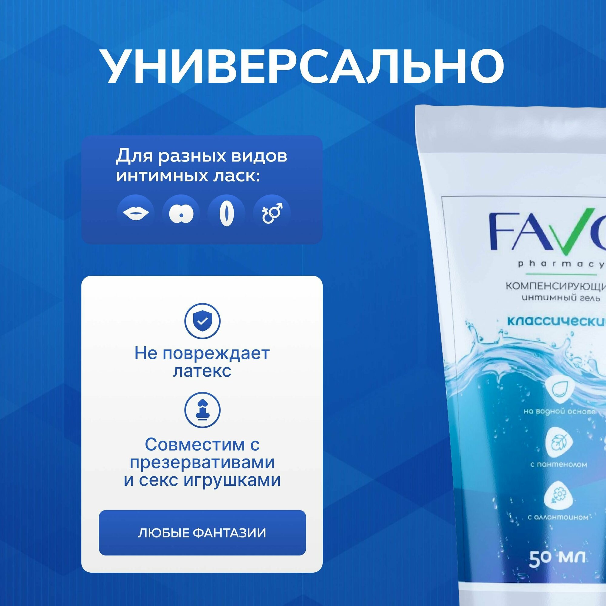 Лубрикант / Интимная гель-смазка FAVO "Чувственная ваниль" 50 мл