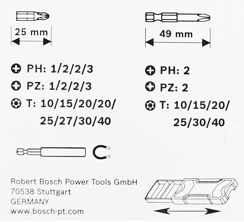 Набор бит Bosch 25шт PH/PZ/T/X-Pro(037) 2607017037 .