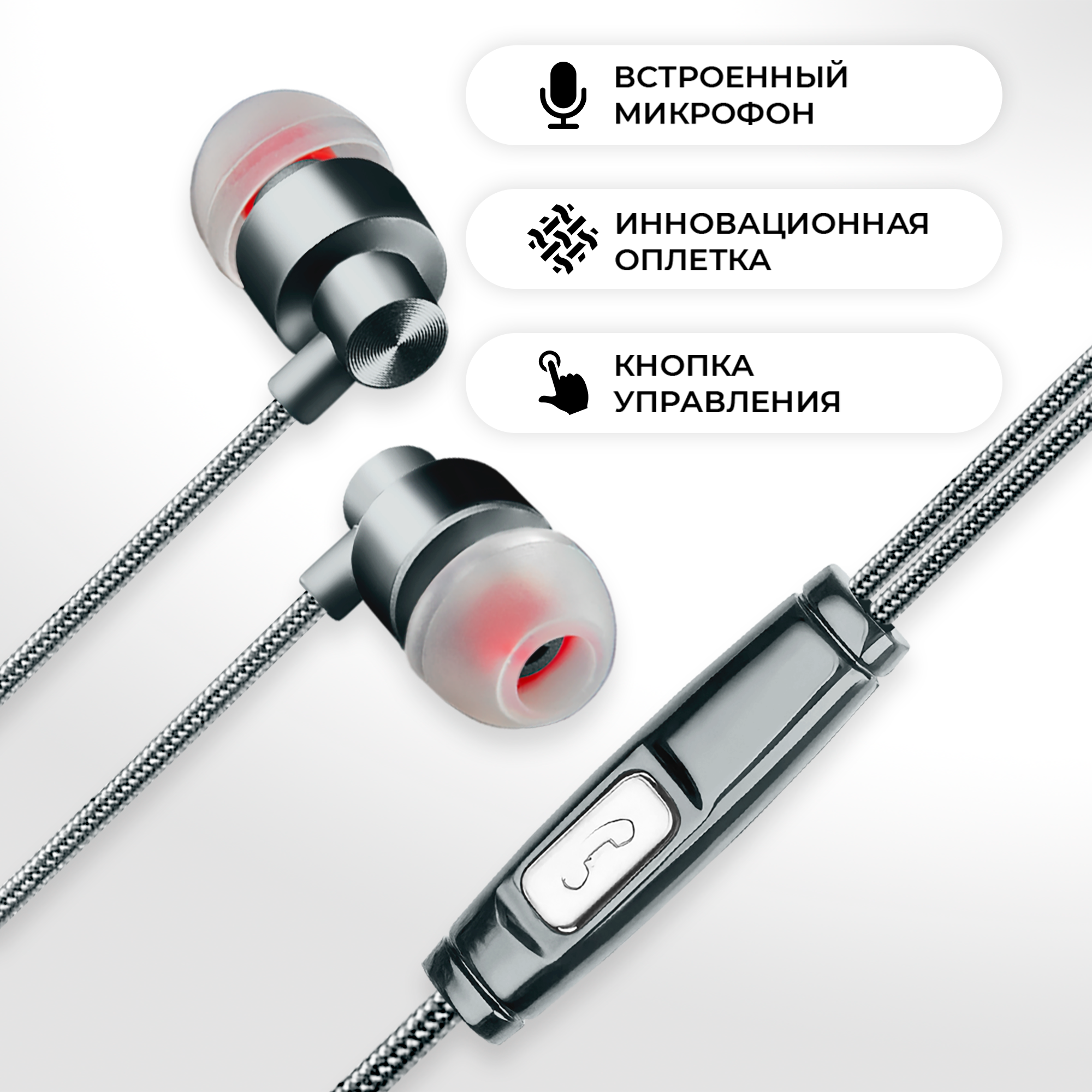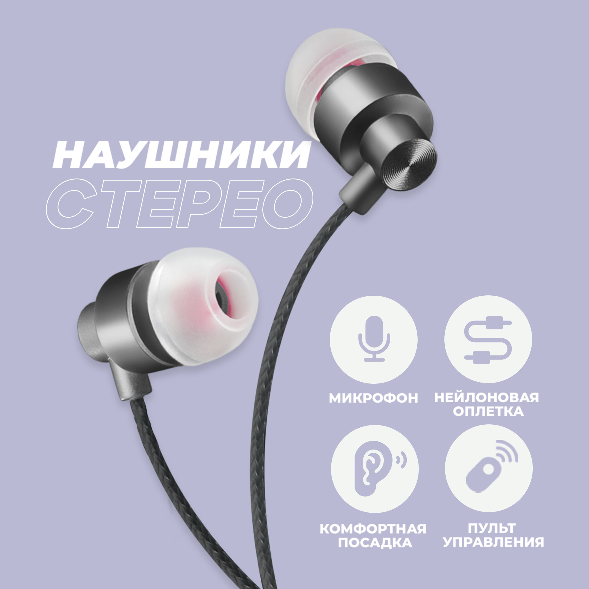 Наушники проводные вакуумные с микрофоном и кнопкой ответа, mini JACK AUX 3.5мм, WALKER, H700, серые / гарнитура для телефона, компьютера, ноутбука