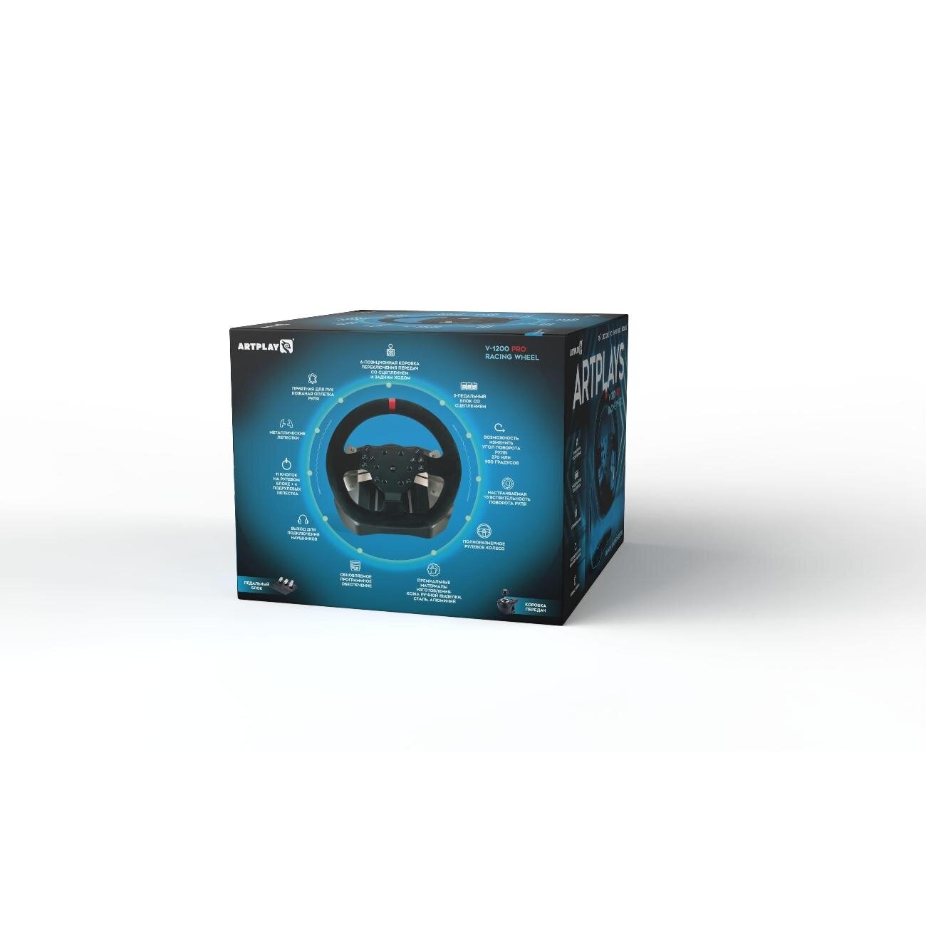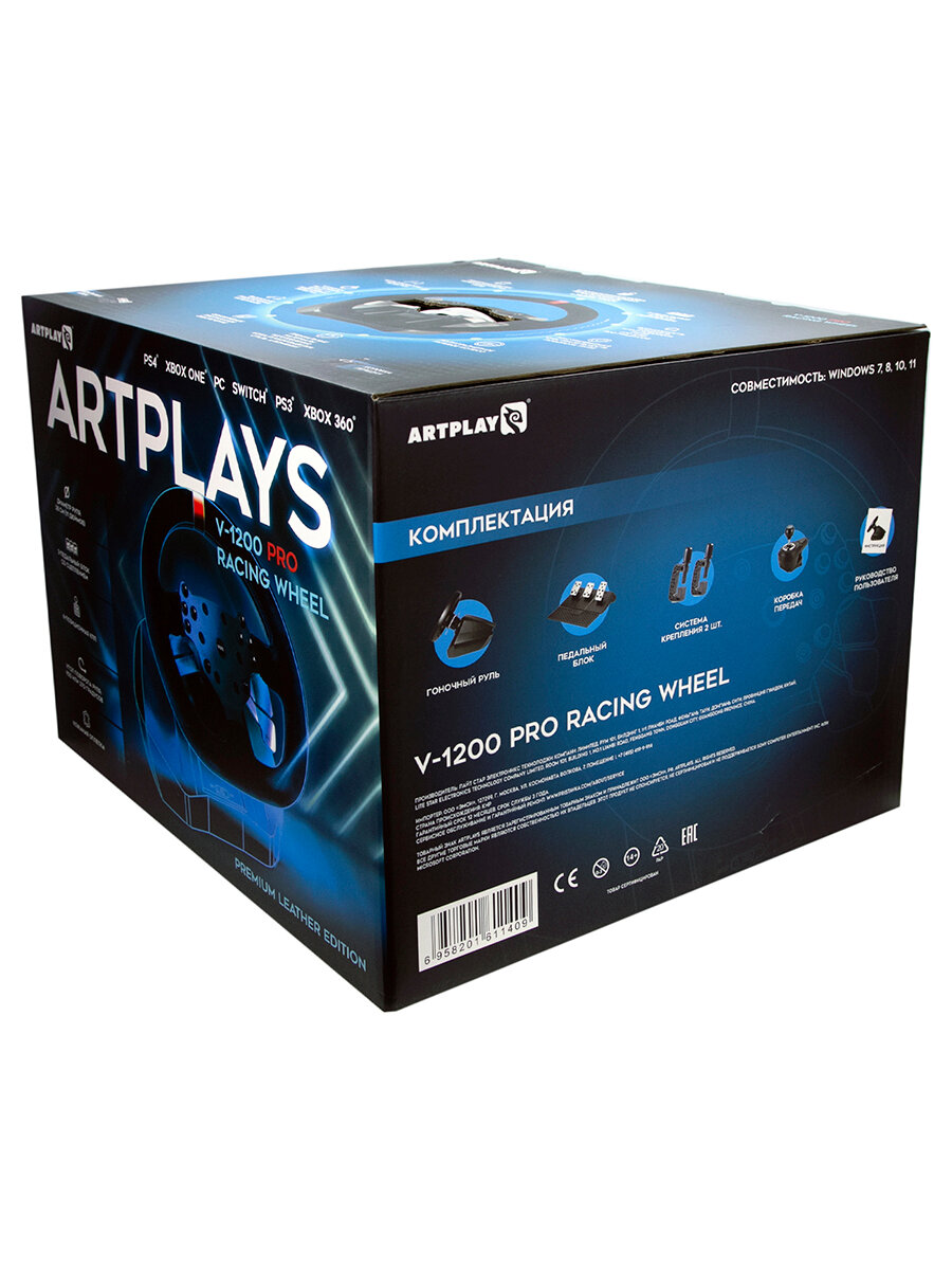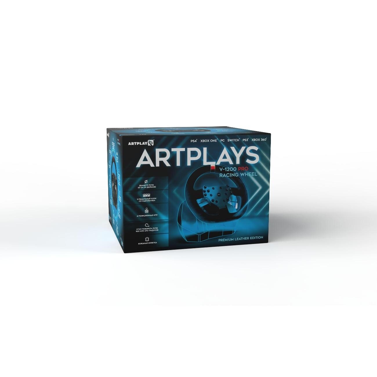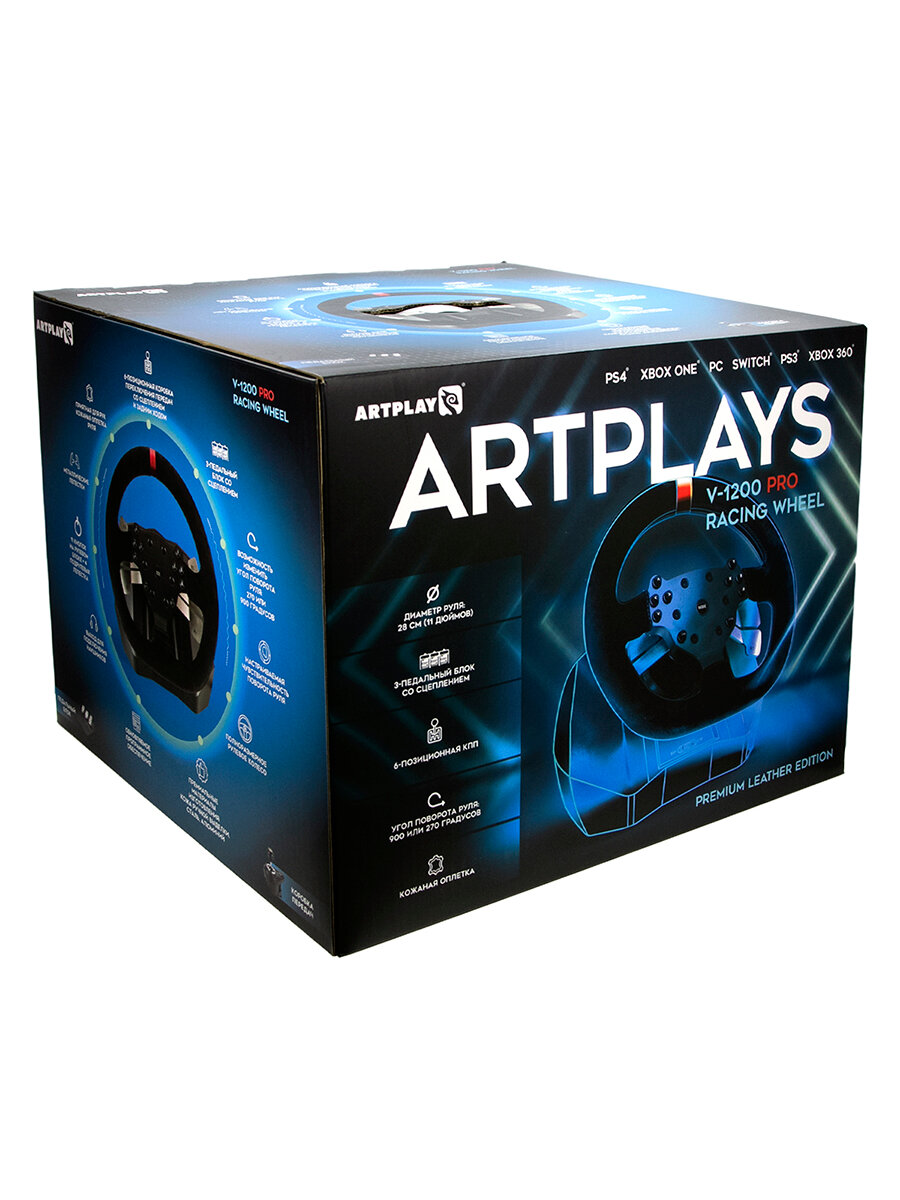 Игровой руль Artplays V-1200 Pro для PS4, PC, Xbox One, Switch. Premium Leather Edition (3-педальный блок, 6-позиционная коробка передач)
