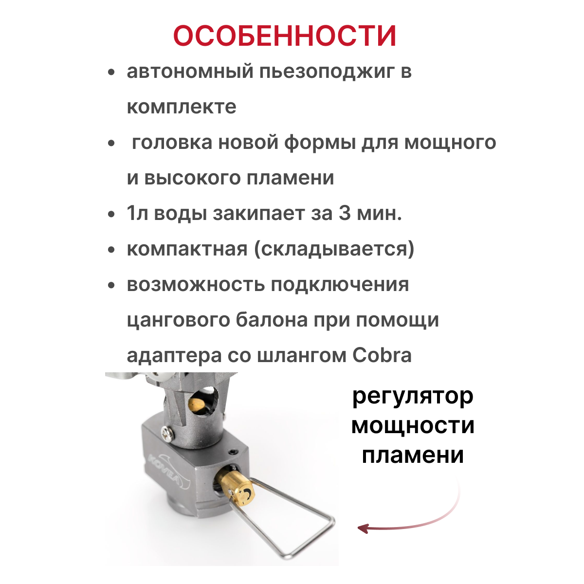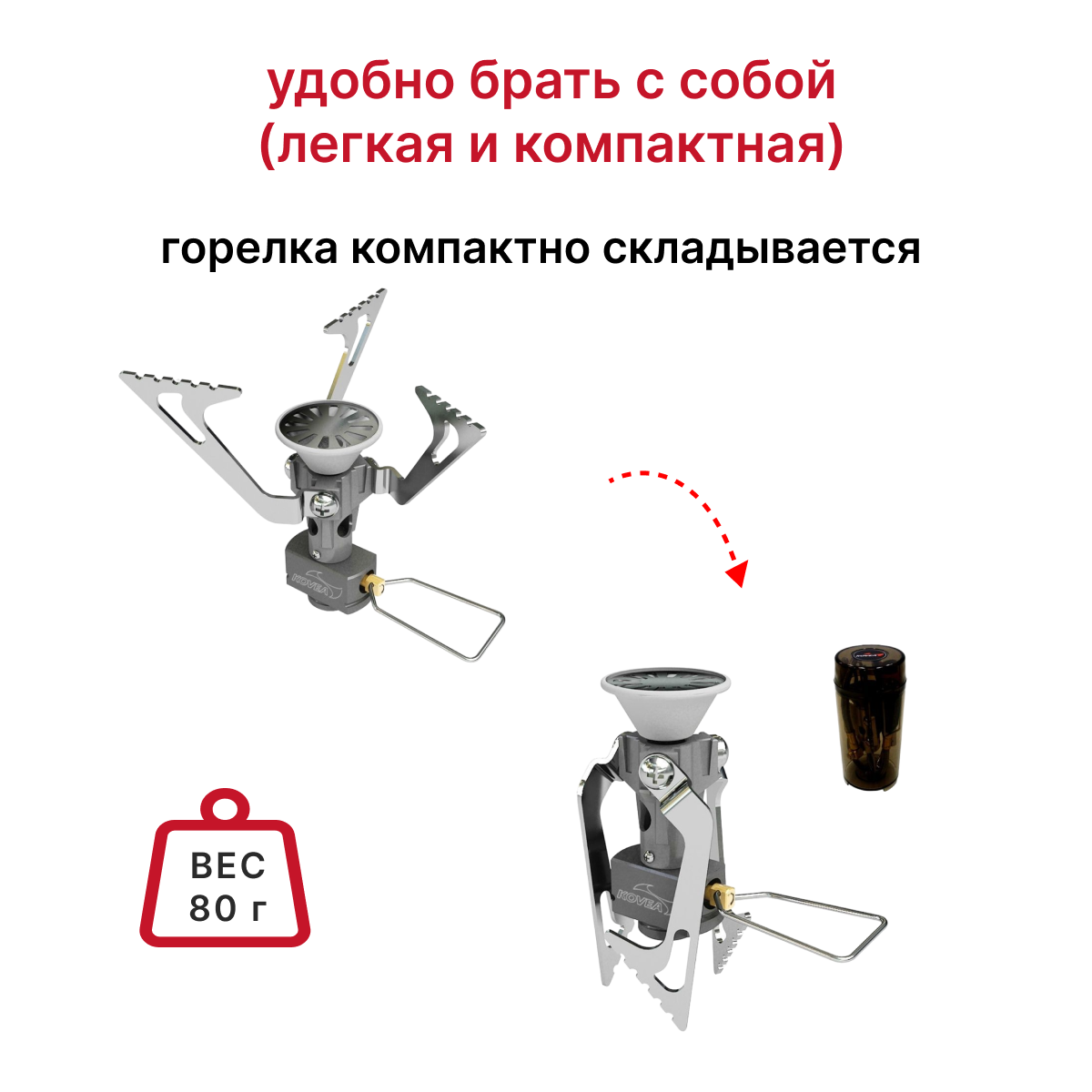 - устойчивость к небольшому ветру - скорость кипячения - отдельный пьезоподжиг - крепкий пластиковый чехол для переноски |