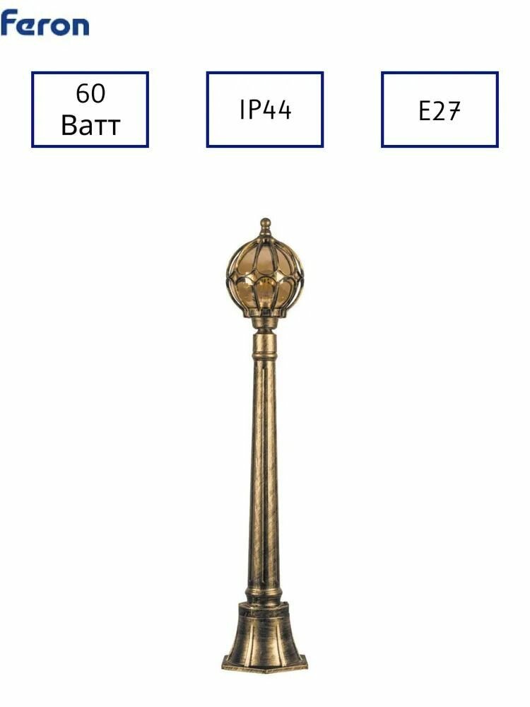 Светильник садово-парковый Feron PL3706 круглый, столб 60W 230V E27, черное золото fr_11374