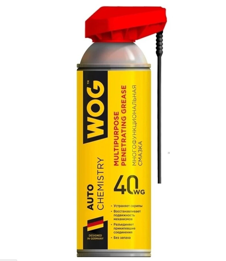 WOG : WGC0301 Многоцелевая универсальная проникающая смазка WOG WG-40 (WD40) с профессиональным распылителем 2 в 1, 335 мл