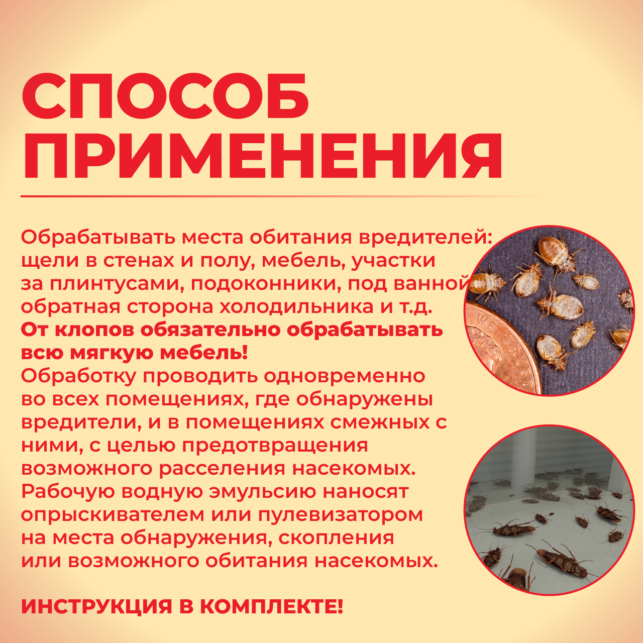 | Плюсы: | Очень отличное средство, первый день после обработки уже исчезли 99 процентов через 2 дня повторно обработал вот уже 7 месяцев как забыли об их существовании только после обработки полы не вытирать |