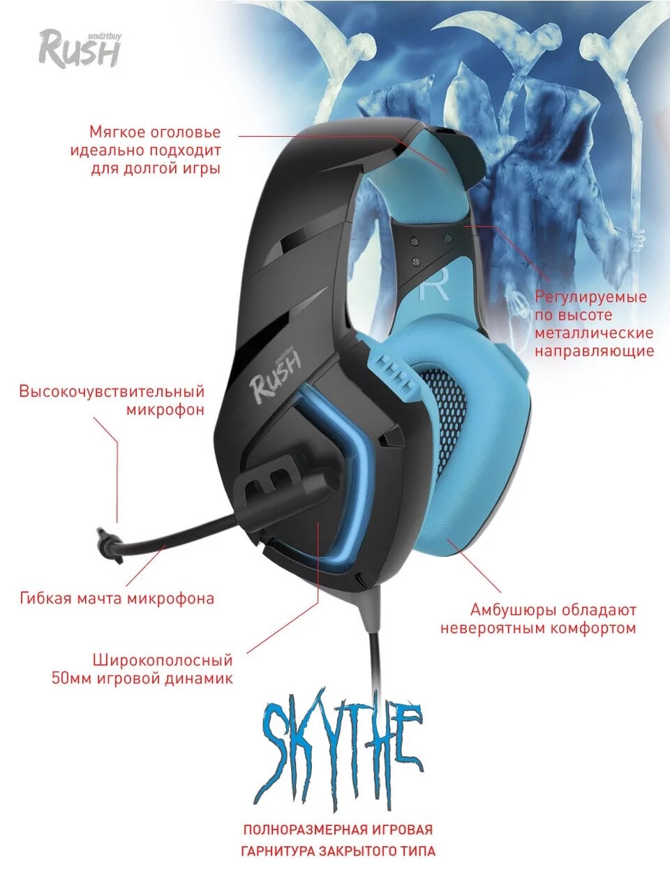 Игровая гарнитура RUSH SKYTHE, динамики 50мм, гибкий микрофон, синяя (SBHG-8700)/20