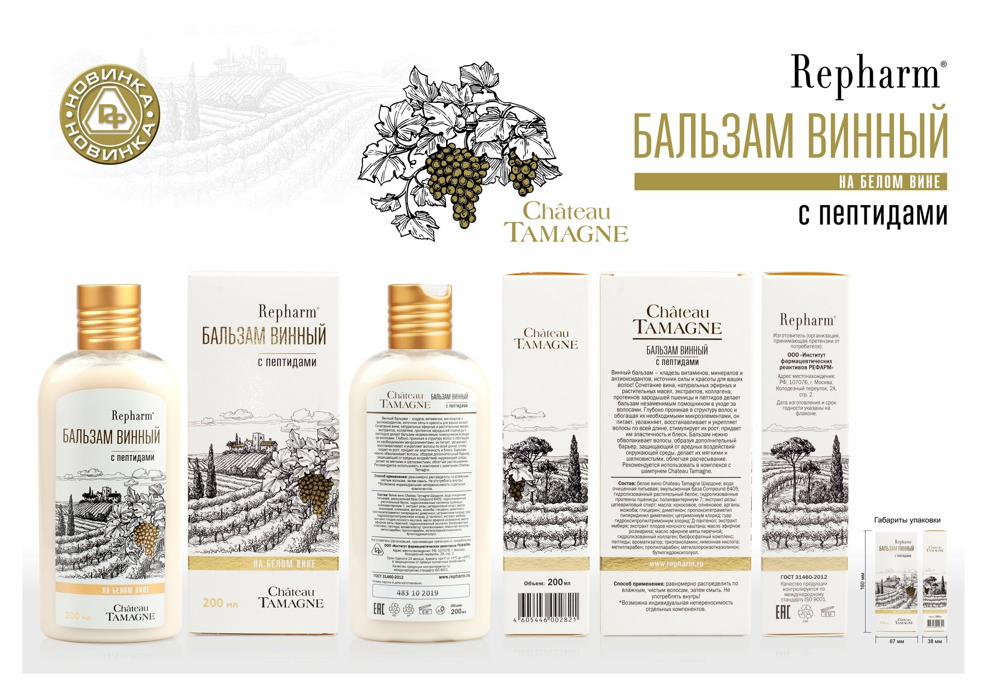Бальзам Repharm для волос винный Chateau Tamagne с пептидами на белом вине, 200 мл интересное: