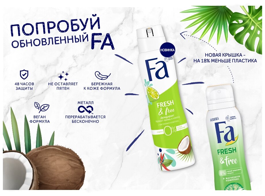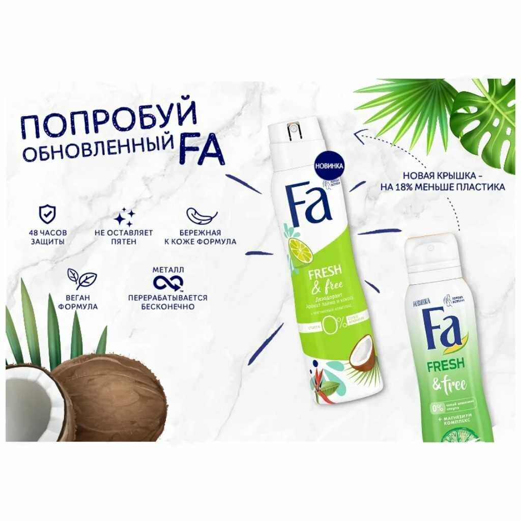 Fa Дезодорант Fresh&Free аромат лайма и кокоса, спрей, 150 мл, 140 г, 150 шт.