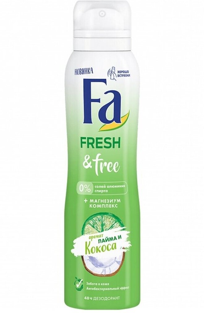 Купить Дезодорант Fa Fresh&Free Аромат лайма и кокоса 24ч аэрозоль, 150мл