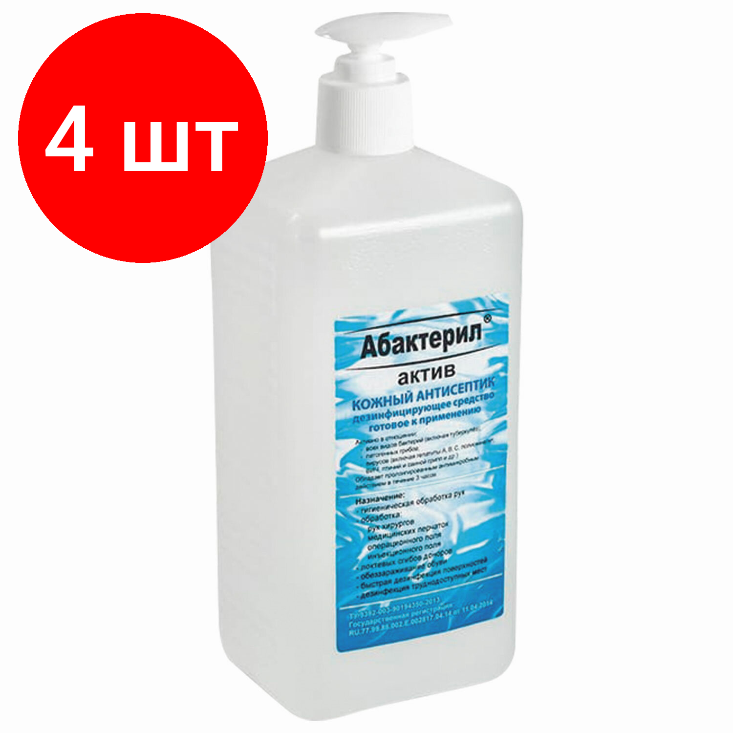 Купить 4 шт. Абактерил-Актив с насос-дозатором 1 л. ГОСТ 12.1.007-76