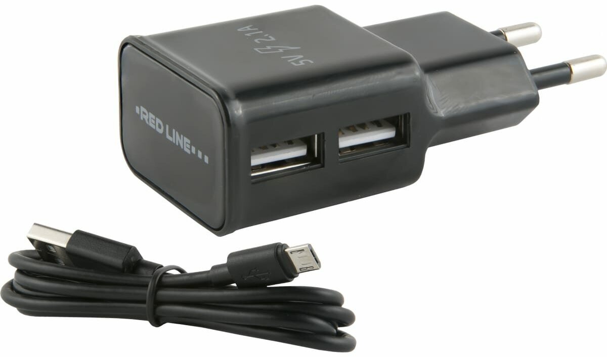Сетевое зарядное устройство Redline NT-2A 2.1A + кабель microUSB черный (УТ000013638)