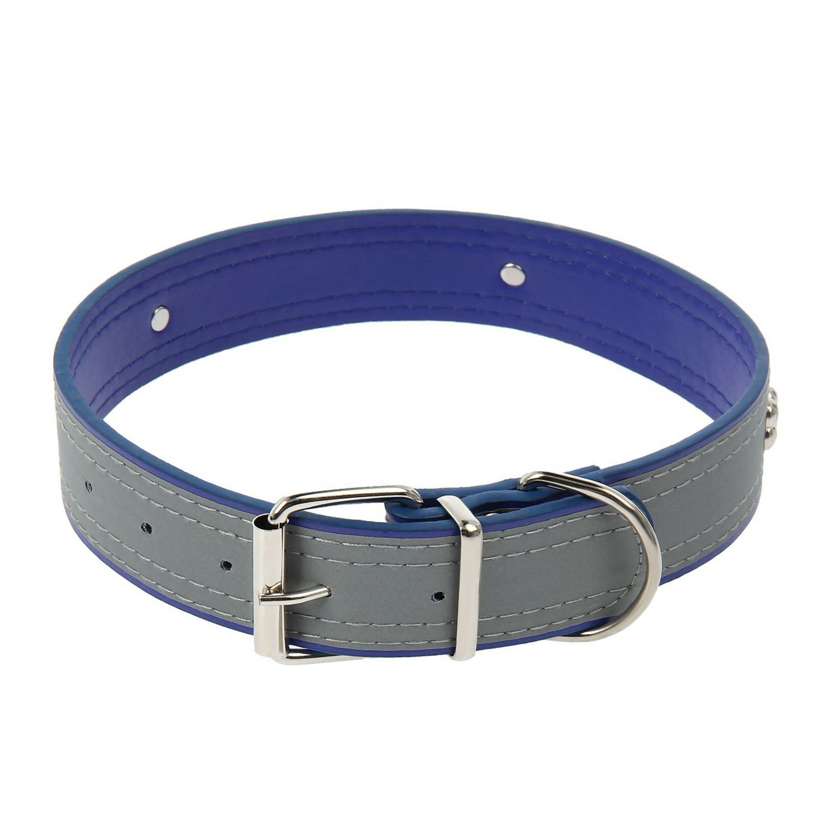 Для ежедневного использования ошейник Пижон широкий со светоотражающей полосой и косточками (2830739/2830740/1037450/1381384), длина ошейника 66 см, синий