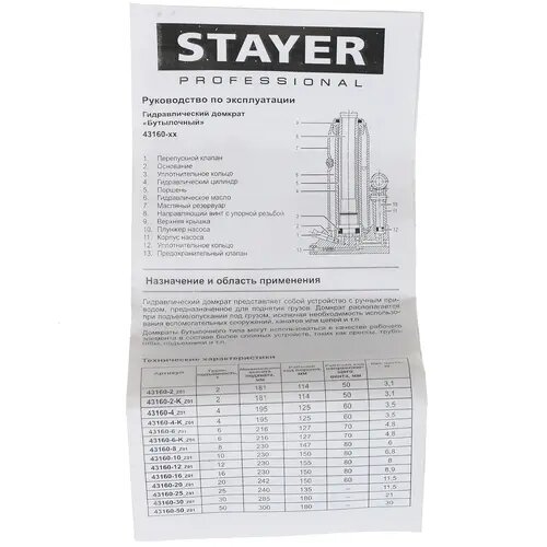 Купить STAYER RED FORCE 10т 230-460мм домкрат бутылочный гидравлический арт.43160-10_z01