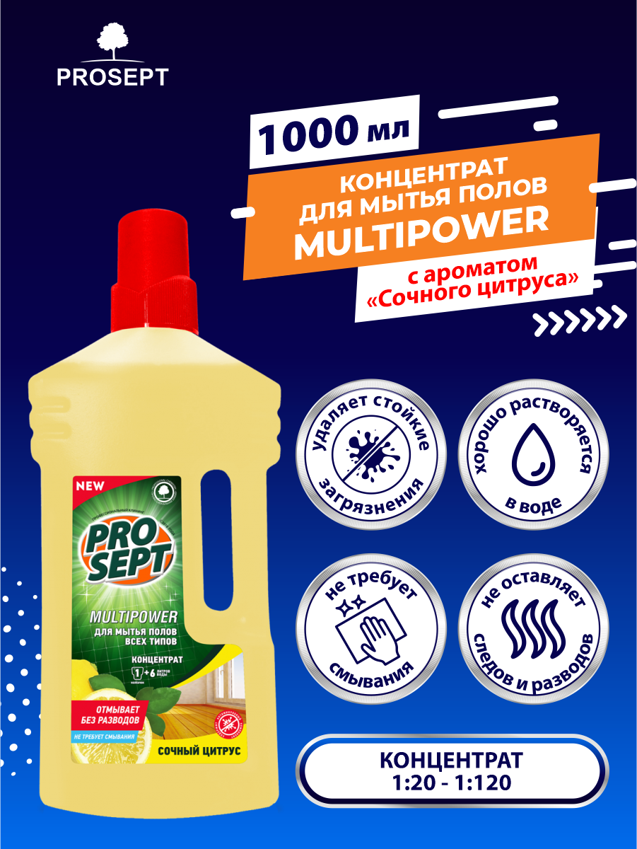 Средство для мытья полов Prosept Multipower "Цитрус", концентрат, 1 л