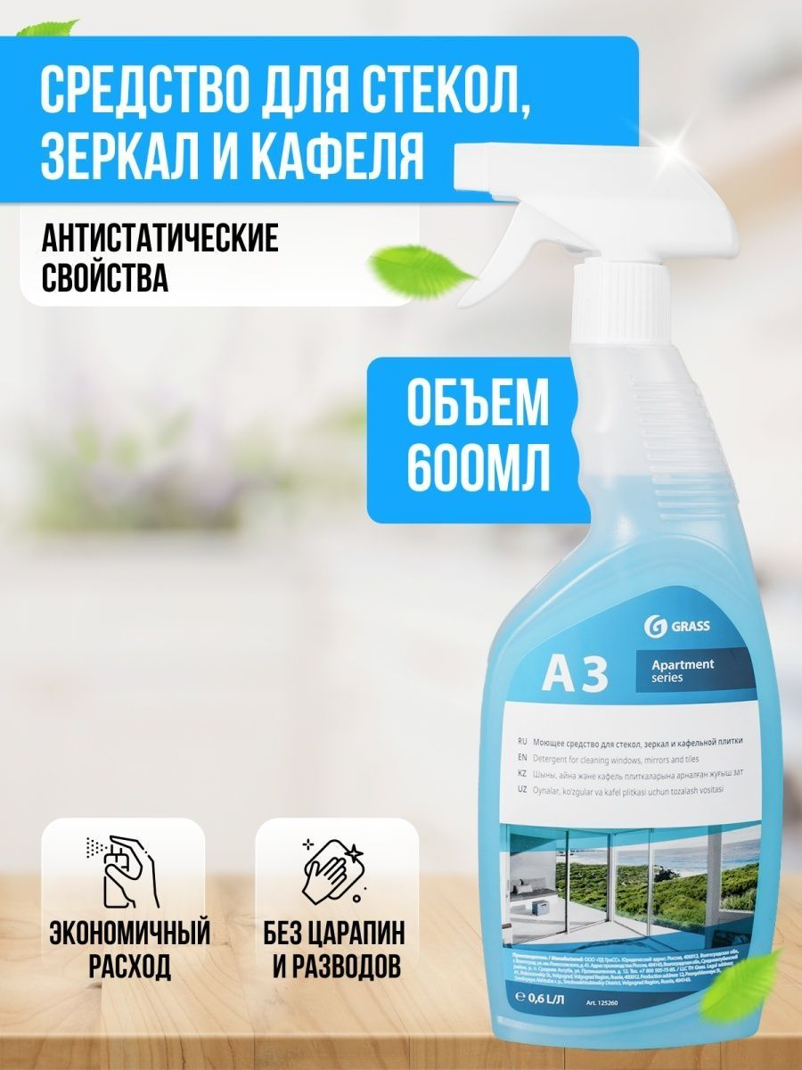 Спрей Grass Apartament series А3 для стекол, зеркал и кафельной плитки, 600 мл
