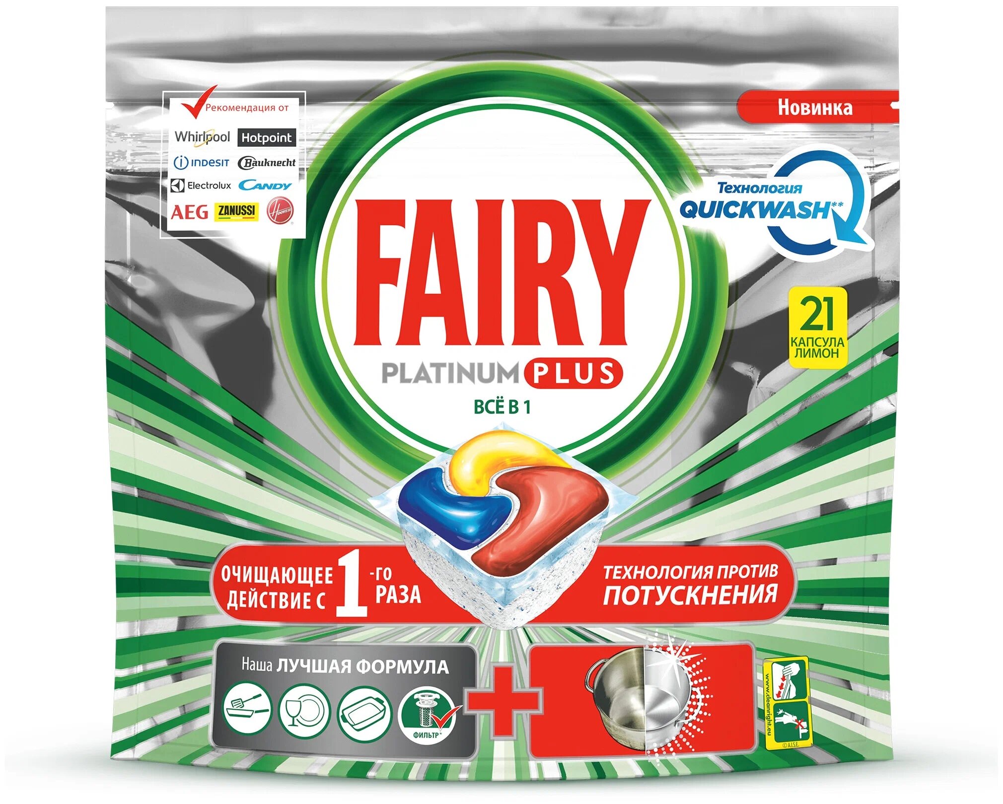 | Отзыв: | Многокомпонентные капсулы Fairy Platinum Plus Всё в одном с функцией супер-сияния посуды стоит попробовать – хотя бы 1 раз, ведь благодаря им Ваша посуда засияет по-новому. Хотите обновить внешний вид кастрюль, а особенно крышек от сковородок, тогда это только к этим капсулам.