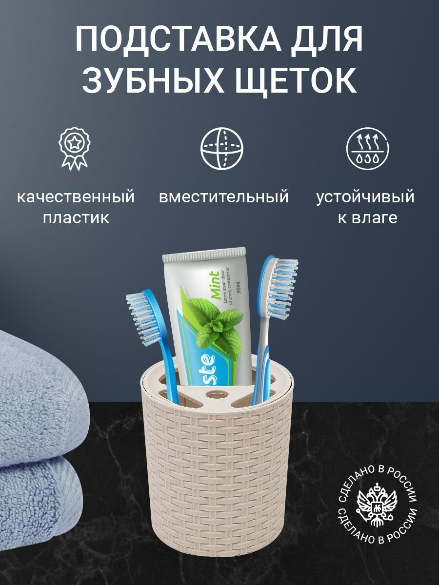 Подставка для зубных щеток и пасты, держатель для ванной, стакан для хранения зубной щетки Альтернатива Плетенка, слоновая кость