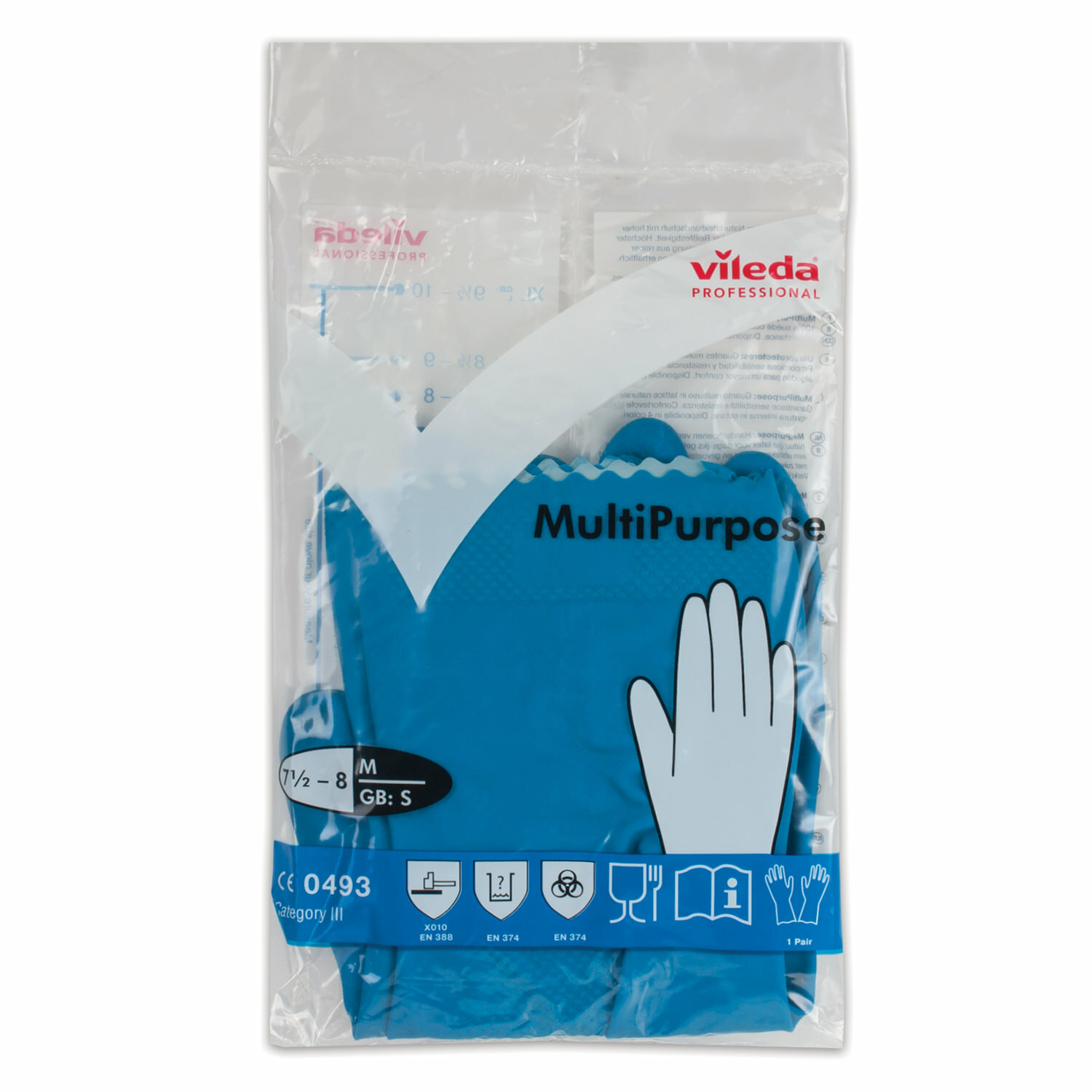 Перчатки латексные Vileda MultiPurpose, синие, размер 8 (М), 1 пара (100753)