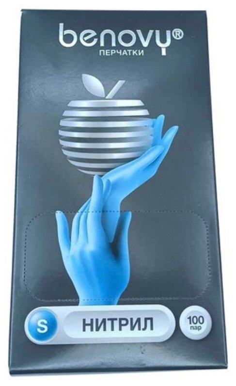 Перчатки нитриловые смотровые Benovy BS голубые (100 пар, S)