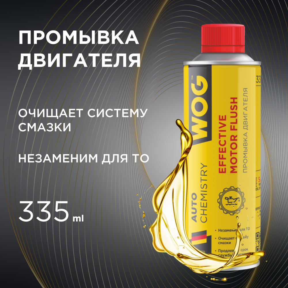 Эффективная промывка двигателя "Motor flush" (5 минутная промывка автомобиля), очистка двигателя, редукторов и МКПП WOG, 335 мл