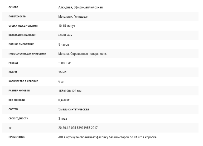 | Плюсы: | Удобный формат, если требуется немного еюкраски для мелкого ремонта. Быстро сохнет |