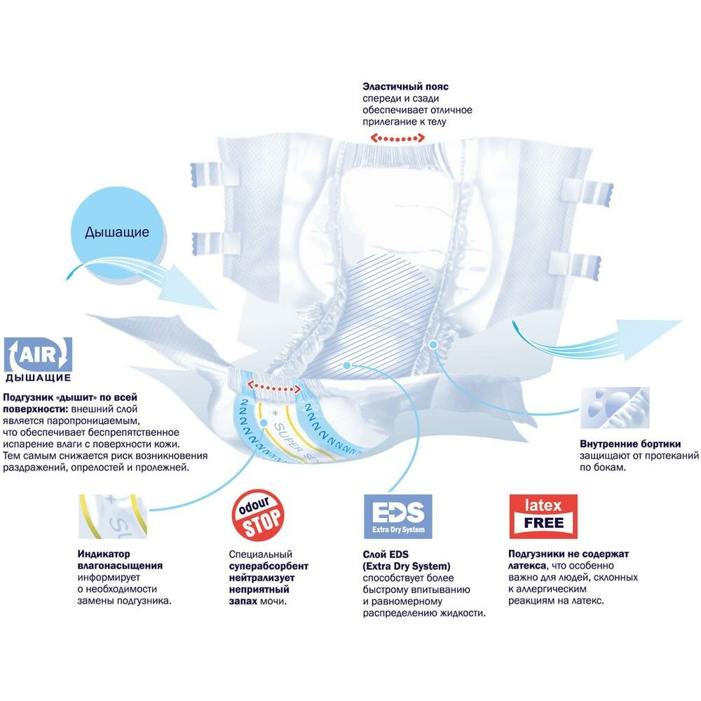 Подгузники (памперсы) для взрослых Super Seni Medium (средние) (обхват 75-110 см), 30 шт