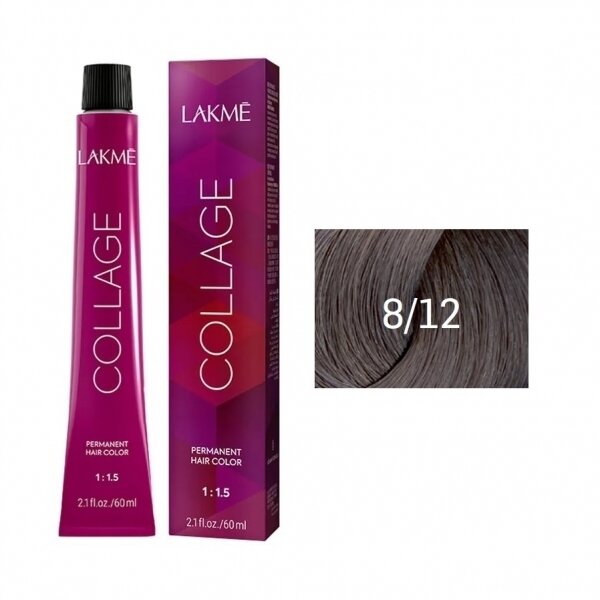 LAKMÉ, COLLAGE, Перманентная крем-краска для волос №8/12, Светлый блондин пепельно-фиолетовый, 60мл