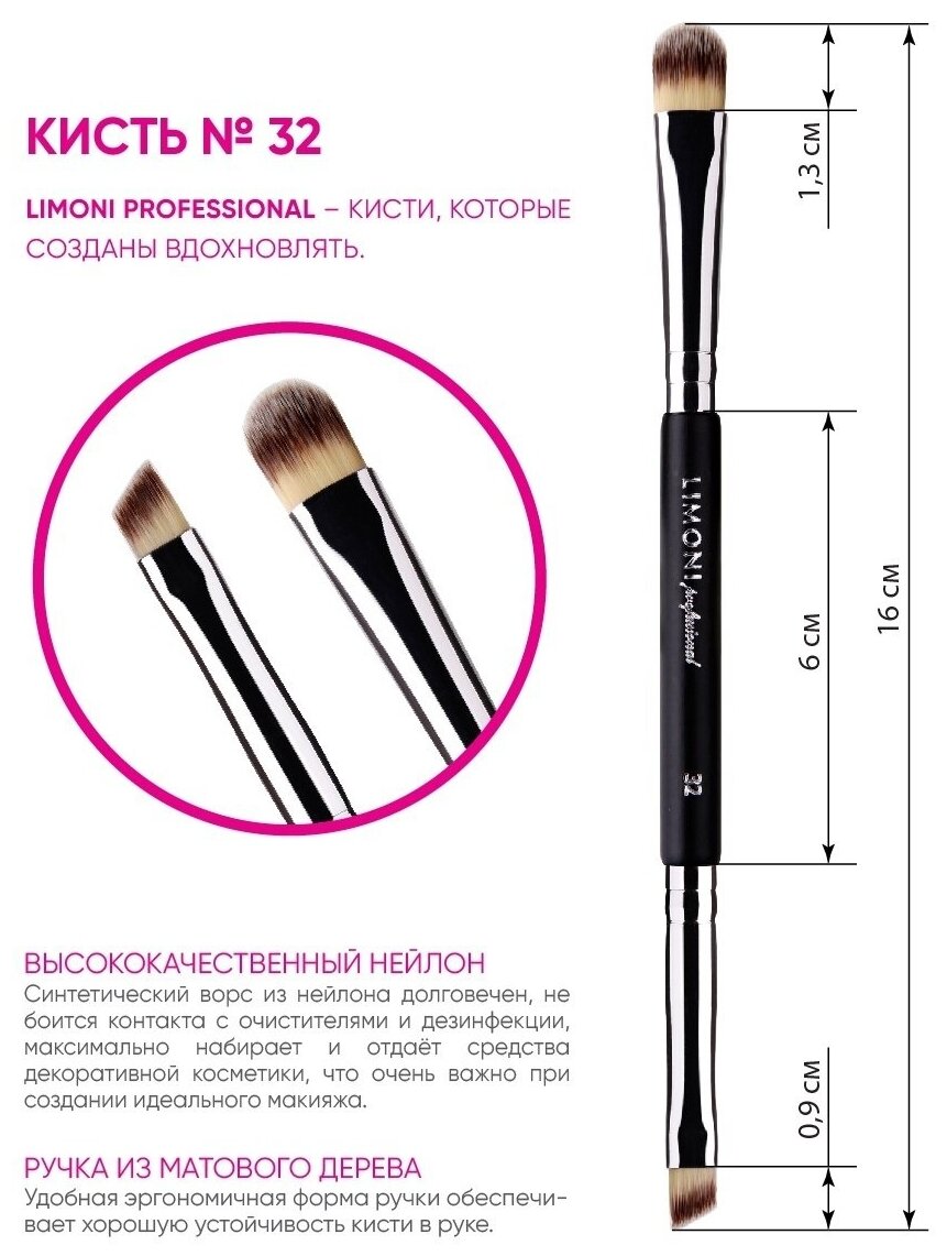 Кисть двусторонняя Limoni Professional для жидких тональных средств №32, нейлон