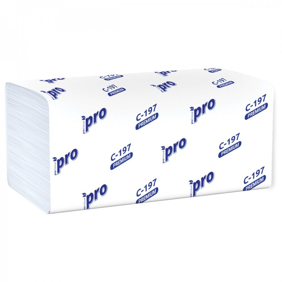 Полотенца бумажные 200 шт., PROtissue (H3) PREMIUM, 2-слойные, белые, комплект 20 пачек, 22х21 см, V-сложение, С197, C197