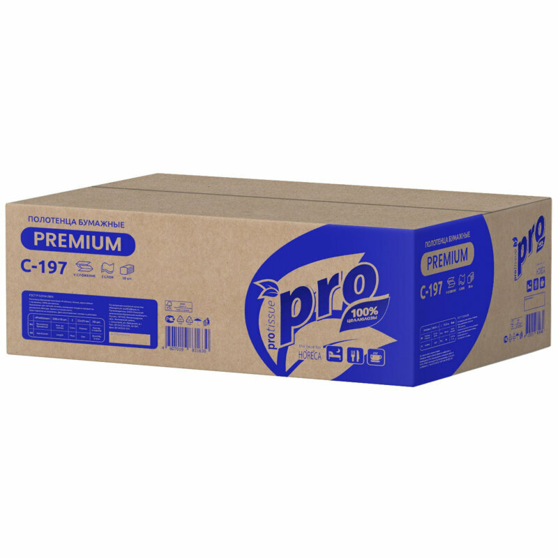 Полотенца бумажные Protissue Premium C-197 V-сложения двухслойные, 20 пачек по 200 лист.
