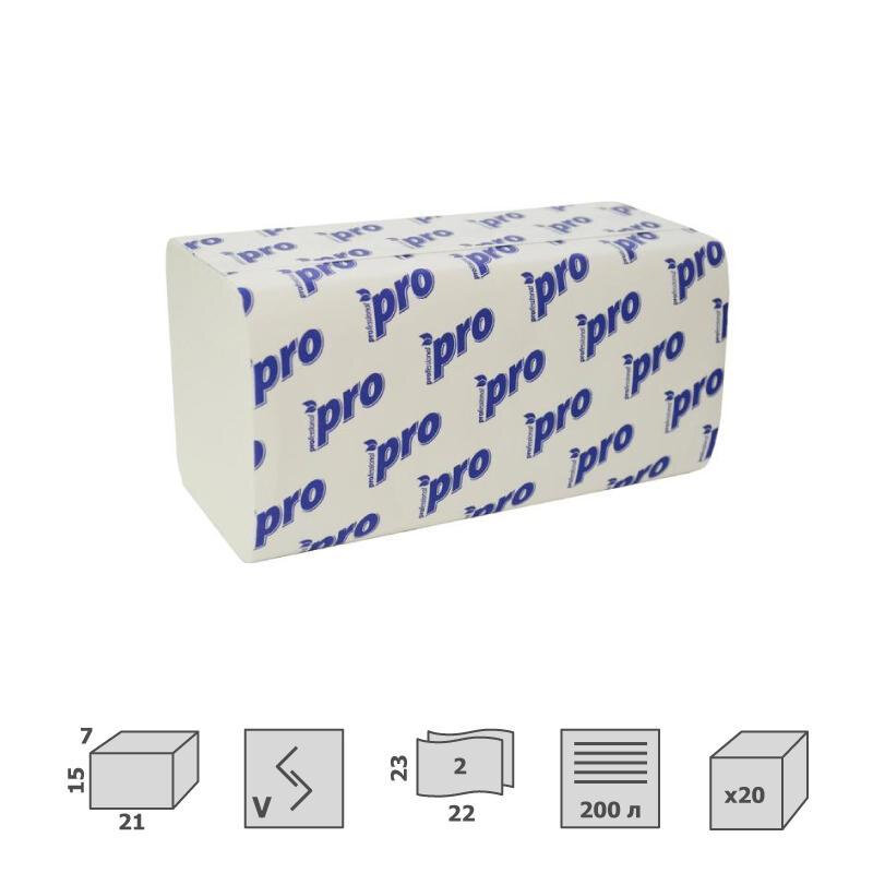 Полотенца бумажные PRO 2 слоя, 200л 20пач/кор V-сложения, ения, C197