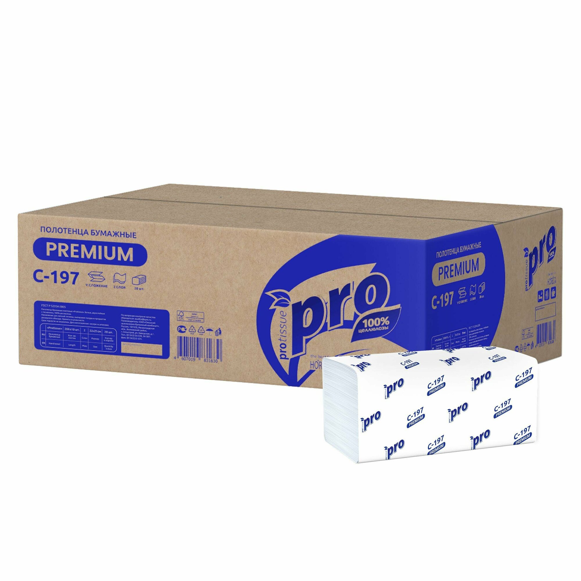 Полотенца бумажные Protissue Premium C-197 V-сложения двухслойные, 20 уп. 200 лист.